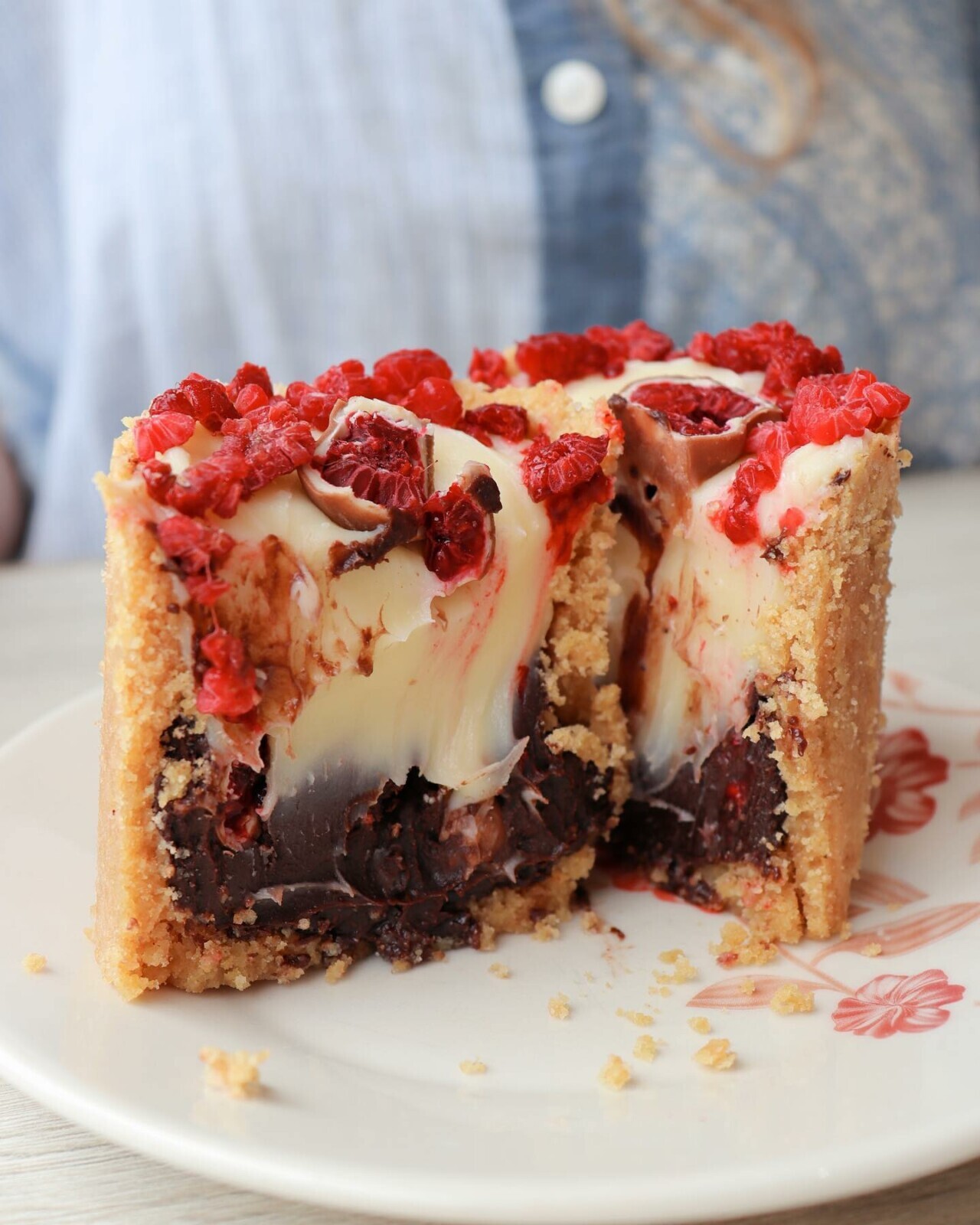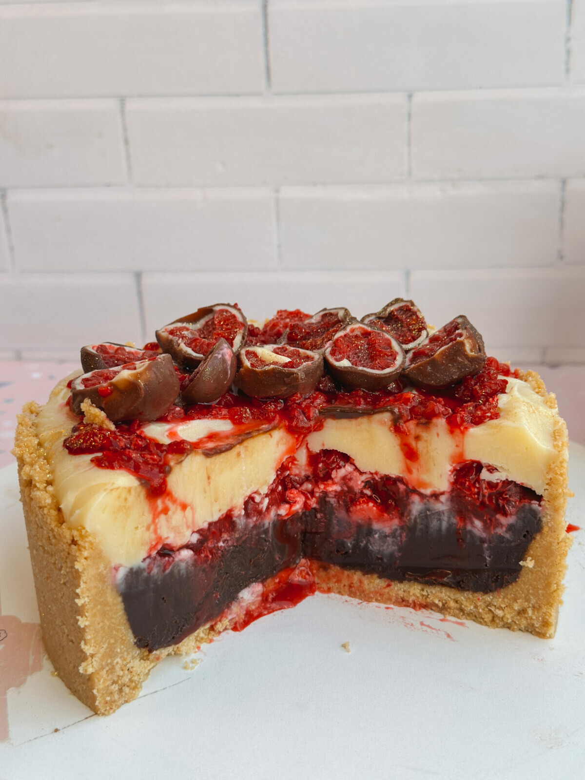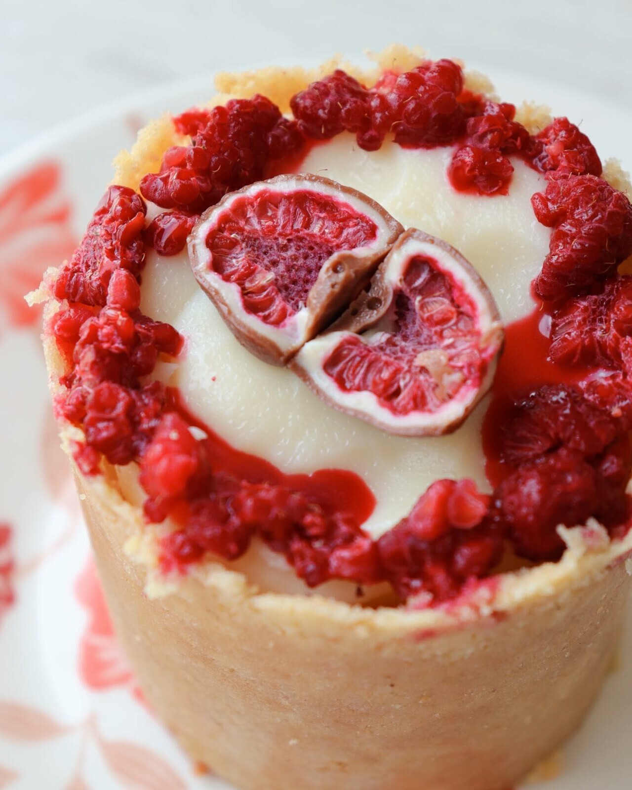 Cheesecake vegan zmeură, vanilie și ciocolată, pentru iubitorii gustului dulce-acrișor