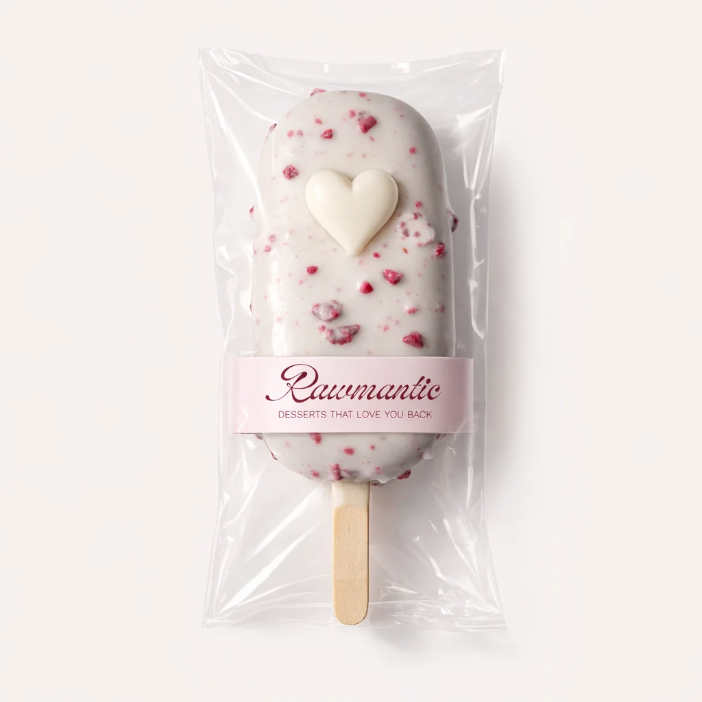 Creată special pentru Valentine’s Day, această înghețată raw-vegană pe băț combină crema fină de vanilie și cocos cu bucăți crocante de zmeură și un strat catifelat de ciocolată albă vegană, într-un desert spectaculos, romantic și memorabil.
