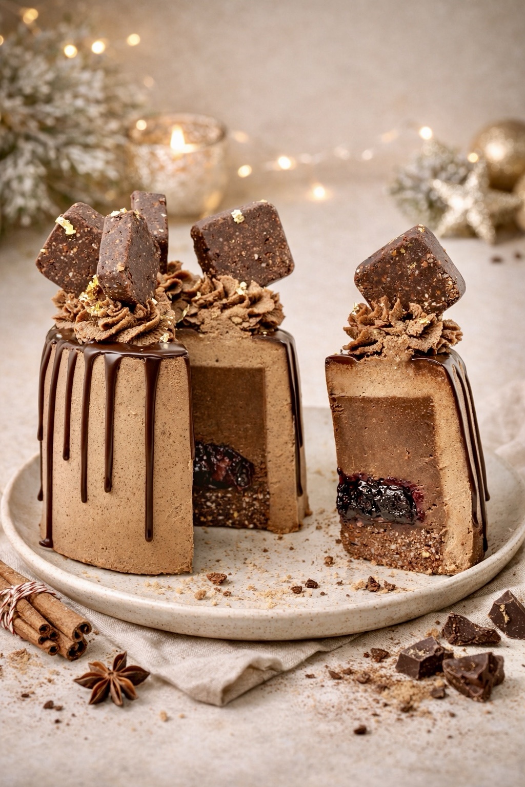 Tort vegan Double Chocolate Chunk 🍪 cu ciocolată intensă, zmeură acrișoară și negresă vegană ✨